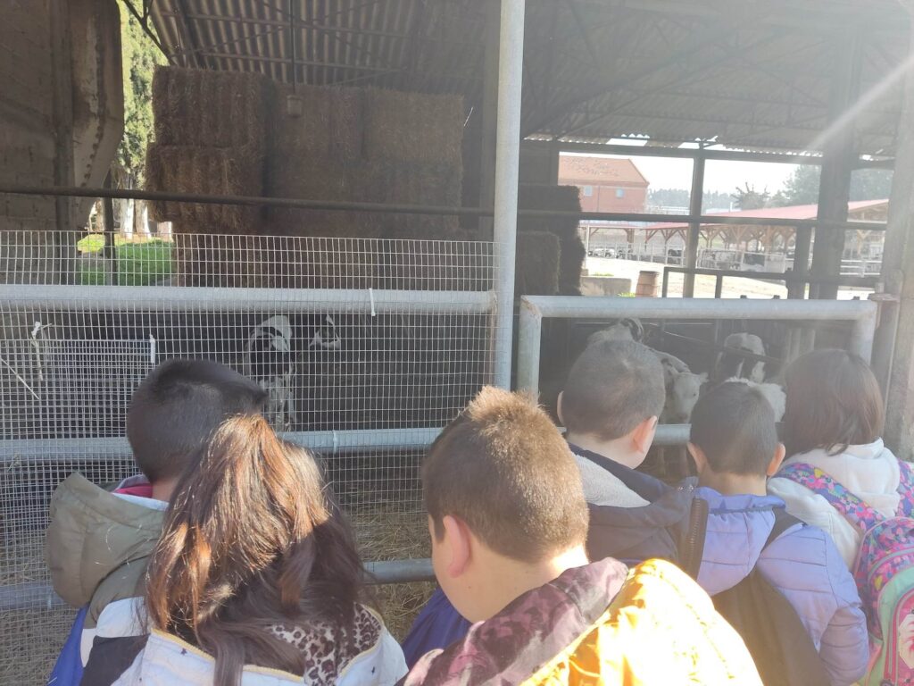 2. Στη συνέχεια επισκέφτηκαν το βουστάσιο είδαν από κοντά και ενημερώθηκαν για τις γαλακτοπαραγωγικές αγελάδες της σχολής , είδαν τα σκουλαρίκια και το βραχιόλι που φοράνε , έμαθαν πόσο γάλα παράγουν ημερησίως και πόσο τρώνε για να παράξουν το αγαπημένο μας γάλα.