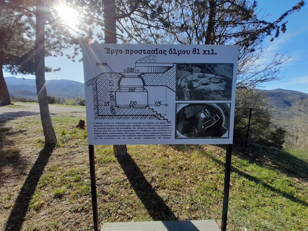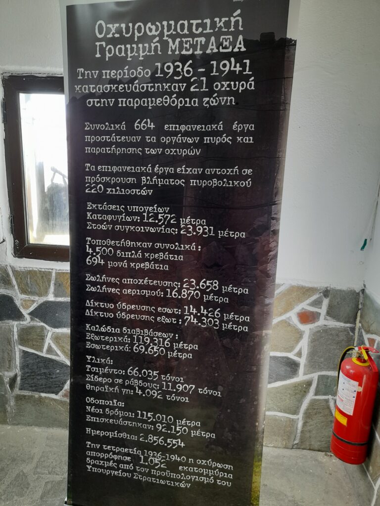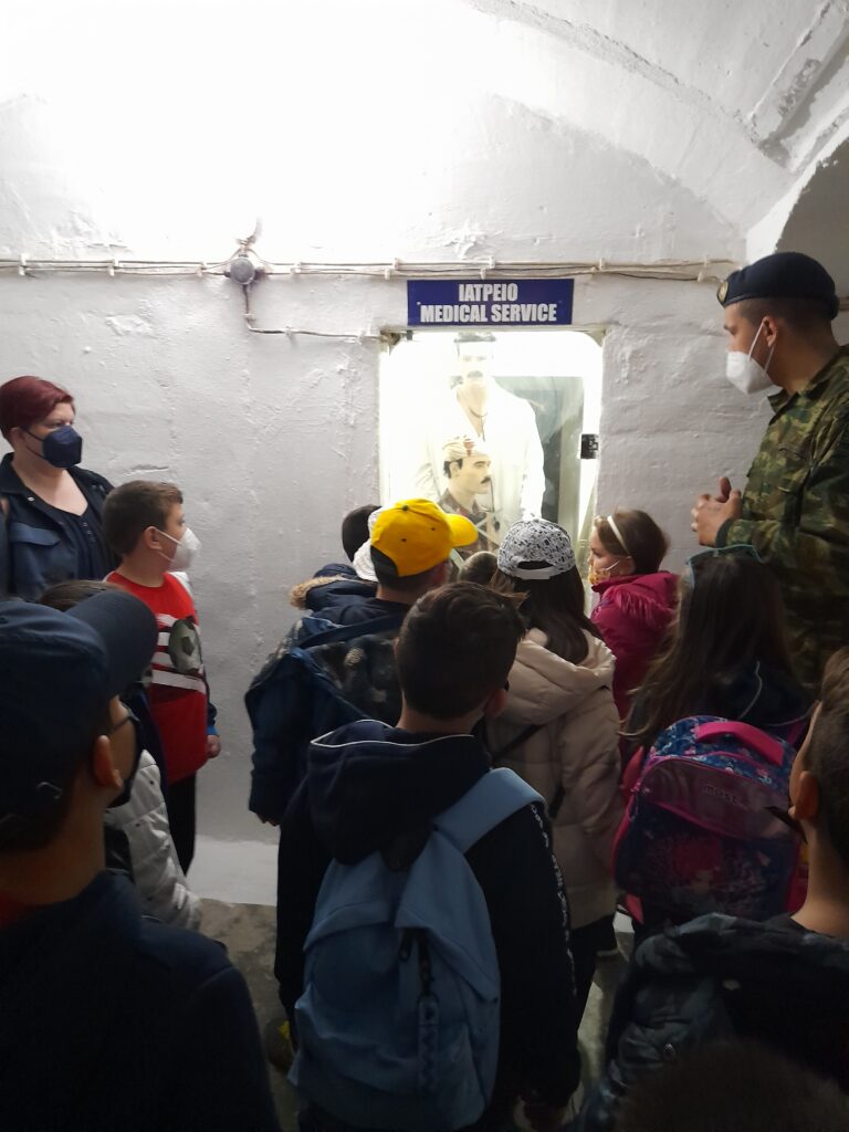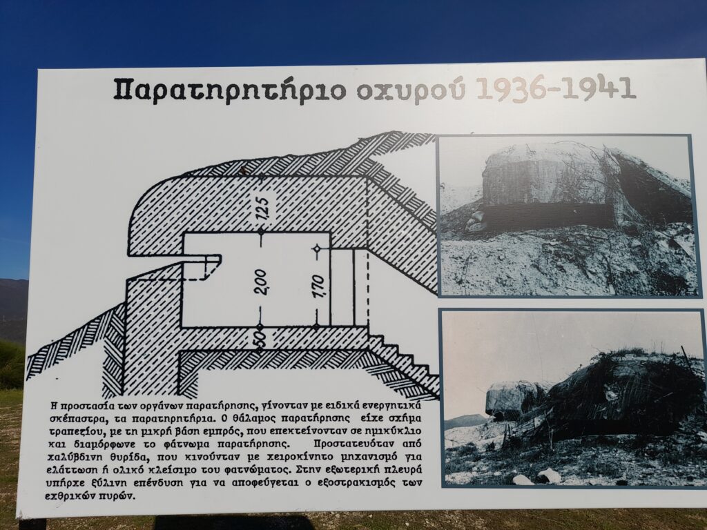 Ξεκινήσαμε από το παρατηρητήριο, όπου ακούσαμε για ποιον λόγο άρχισε το 1935 το χτίσιμο των 21 Οχυρών (5 επισκέψιμα σήμερα), τι κάλυπταν, ποιοι ήταν οι κατασκευαστές τους, τι υλικά χρησιμοποιήθηκαν και ποια ήταν η πολιτική ηγεσία που ολοκλήρωσε το έργο με την έναρξη του πολέμου του 1940. Τέλος μας εξήγησε για τη Μάχη των Οχυρών με τους Γερμανούς στις 6 Απριλίου 1941 και πώς εξελίχτηκαν οι μέρες εκείνες. Στη συνέχεια κατεβήκαμε στις στοές, περπατώντας για 150 μ. κάτω από τη γη. Διαπιστώσαμε ότι μια ολόκληρη πολιτεία βρισκόταν εκεί κάτω και οι στρατιώτες θα μπορούσαν να μείνουν πολλές μέρες χωρίς να χρειάζονται να ανεφοδιαστούν, αλλά και να βγουν.