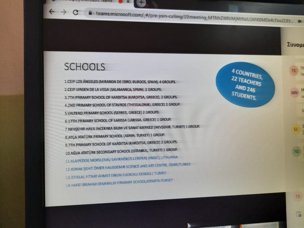Οι μαθητές όλων των χωρών που συμμετέχουν στο πρόγραμμα, συναντήθηκαν σε μία videoconference που πραγματοποιήθηκε στο χώρο του σχολείου ημέρα Παρασκευή 11 Μαρτίου.